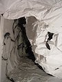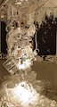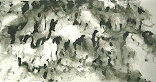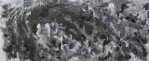 This work investigates motion and the clash and tension between two forces as they meet. By limiting my palette to black and white, my investigation which started with the force of a wave crashing, becomes the tension between negative and positive. The 2D work is painted with various instruments (mops, brushes and towels) with sumi ink on paper and the 3D work is constructed in 3D with paper, cloth, clear recycled plastics, lights and sound.